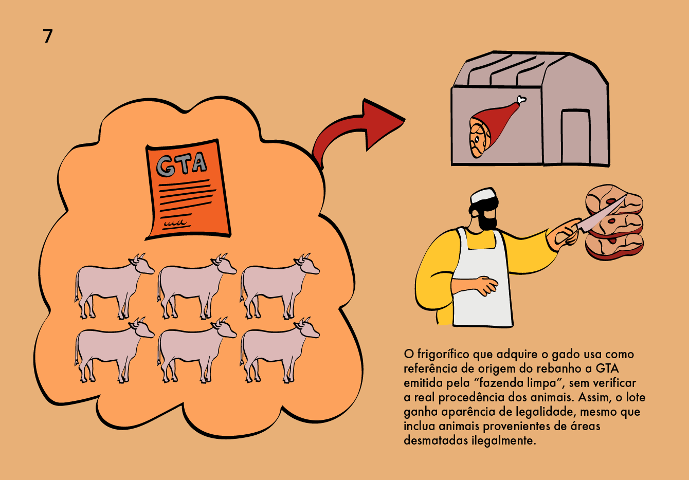 Um exemplo disso é a triangulação de gado - quando animais criados em áreas desmatadas ilegalmente ou protegidas são transferidos para fazendas "limpas", apenas para disfarçar sua origem e driblar mecanismos de fiscalização.